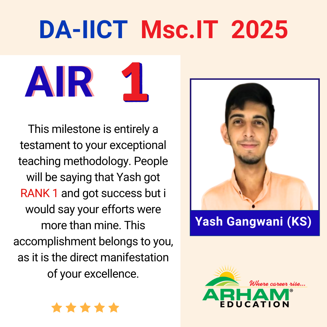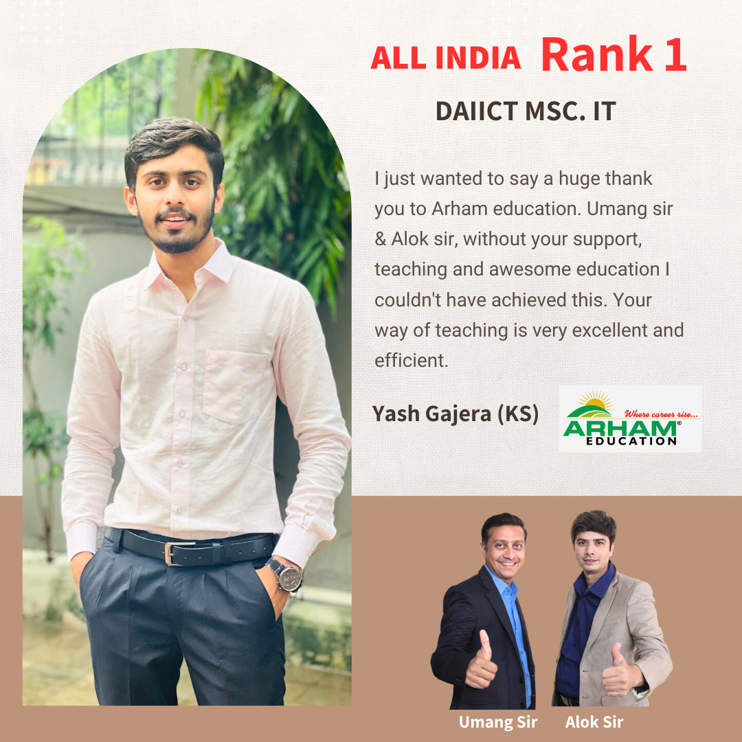 - ALL INDIA RANK 1 MSc.IT DAIICT Yash Gajera (KS)